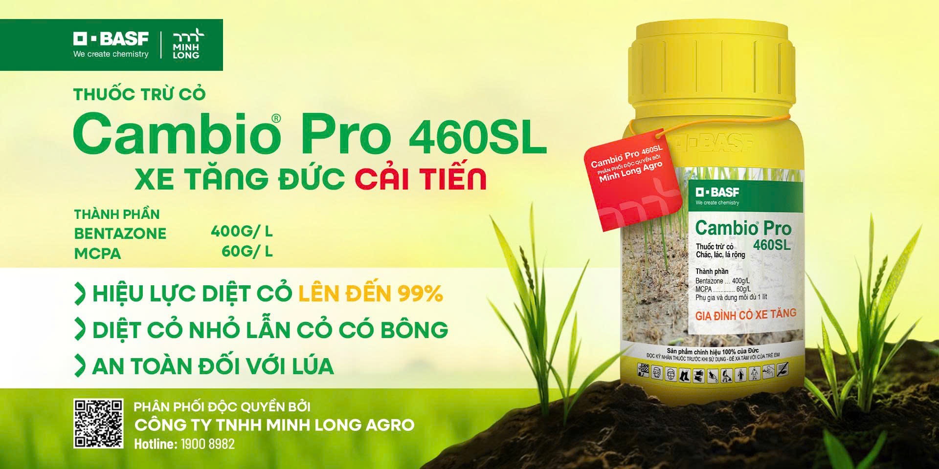 Để giúp bà con chủ động quản lý cỏ chác lác và các nhóm cỏ lá rộng khác, Cambio Pro 460SL – sản phẩm thế hệ mới thuộc tập đoàn BASF (CHLB Đức), được Minh Long Agro phân phối tại Việt Nam, mang đến giải pháp trừ cỏ hậu nảy mầm hiệu quả và linh hoạt.